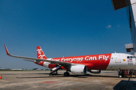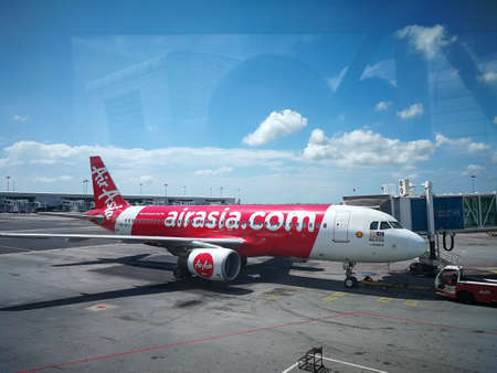 SEPANG, MALAYSIA - APRIL 17, 2019 : Air Asia Low Cost Airlines aircraft at Kuala Lumpur International Airport 2 (klia2). AirAsia operates scheduled domestic and international flights.