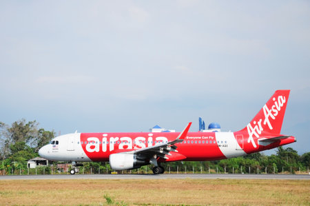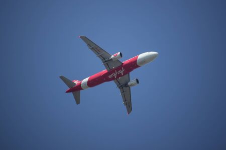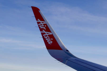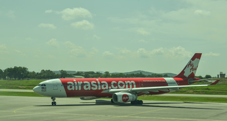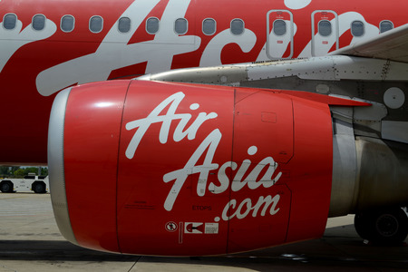 LANGKAWI - MAY 01: Airasia jet flight on May 01, 2014 in Langkawi, Malaysia. AirAsia Berhad is a Malaysian low-cost airline headquartered in Kuala Lumpur, Malaysia