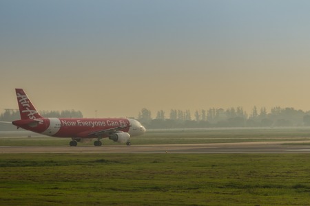CHIANGMAI INTERNATIONAL AIRPORT, CHIANGMAI,THAILAND - JULY 5, 2016: Thai AirAsia Airbus A320 flight is taking off and fly to Donmuang Intenational Airport.