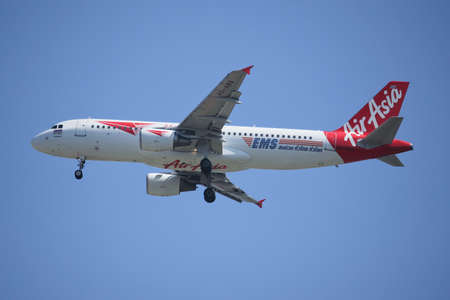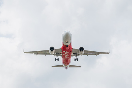 Phuket,Thailand - February 16, 2016: Airasia landing at Phuket international airport on February 16, 2016. The plane comes in Phuket international airport.