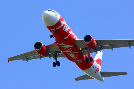 PHUKET, THAILAND - NOVEMBER 06, 2015: AirAsia Airbus A320 take-off. AirAsia Berhad is a Malaysian low-cost airline headquartered near Kuala Lumpur, Malaysia