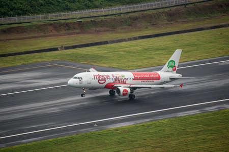 Phuket, Thailand ; September 18,2558 asian express airplane landing at phuket airport