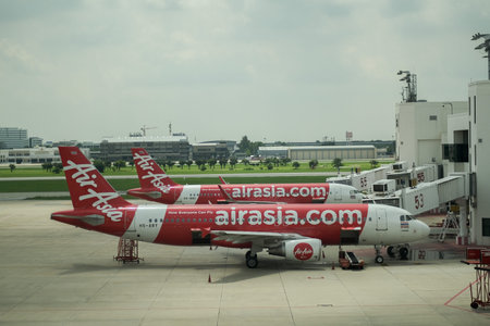 Air Asia plane at Don Mueang Airport in morning