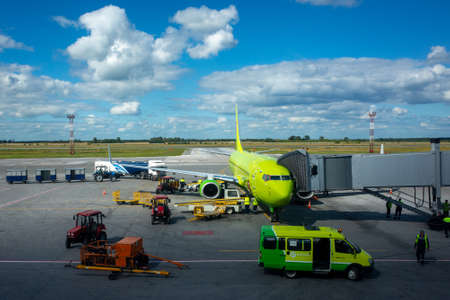 August 14, 2018, Novosibirsk, Russia. S7 Airlines plane at Tolmachevo International Airport in Novosibirsk.