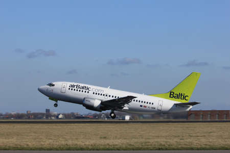 March, 11st 2012, Amsterdam Schiphol Airport YL-BBM Air Baltic Boeing 737-522 take off from Polderbaan Runway