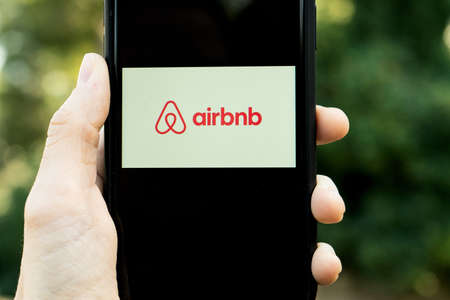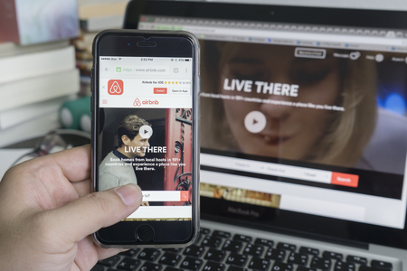 Tokyo, Japan - June 5, 2016: Apple iPhone 6s with Airbnb website on the screen.Airbnb is a website for people to list, find,and rent lodging.Airbnb an online platform for accommodation
