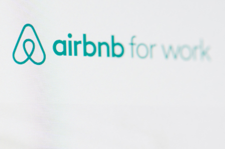 New york, USA - march 15, 2019:Airbnb for work on laptop screen close up view