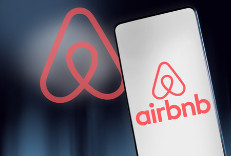 Los Angeles, California, USA - 25 January 2020: Airbnb app logo on background, Illustrative Editorial.