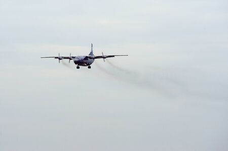TURIN - October 27, 2015 - Cargo plane landing with smoke engines at Turin Airport