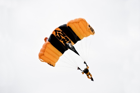 USA, Portsmouth - August 14, 2011: US army parachute jumper demonstrates a gliding technique during air show.