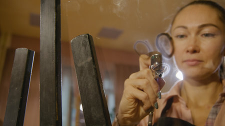 Hand holding a professional airbrush over painting