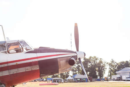 RUSSIA, MOSCOW - AUGUST 1, 2020: Small private single engine propeller airplane at regional airport.