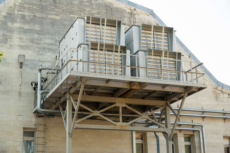 air conditioning ventilation systems installed on the street near the factory building