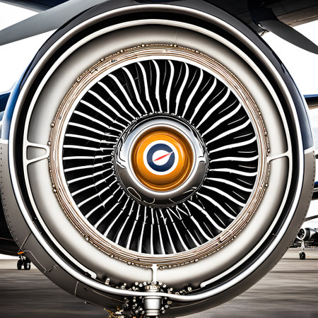 Close-Up of Modern Jet Engine Turbine Blades in Aircraft Industry