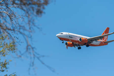 Tan Son Nhat Airport, Ho Chi Minh City, Vietnam - February 28, 2021: Commercial aircraft is about to land at Tan Son Nhat airport in the nice afternoon