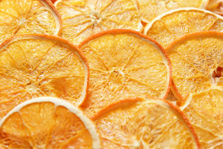 dried citrus fruits, dried oranges close-up view, macro photo, space for text, blank for design, background image of dried oranges