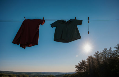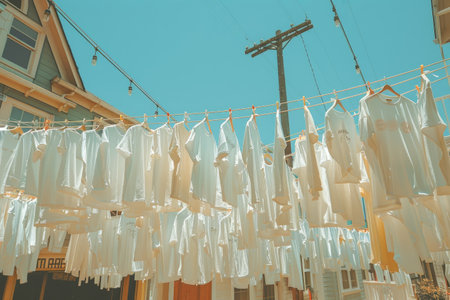 Embrace summer vibes with vibrant t-shirts drying under clear blue skies, adding a pop of color to your outdoor space.