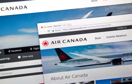 MONTREAL, CANADA - MARCH 30, 2018 : Air Canada official web site on a laptop. Air Canada is Canada's largest domestic and international airline serving more than 200 airports on six continents