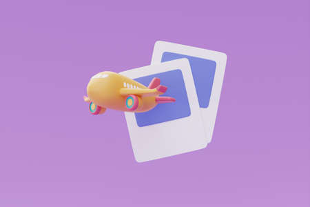 Time to travel concept with airplane and Photo frame,Tourism and travel plan to trip,journey,3d rendering