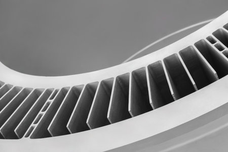 a jet engine's turbine blades, with a focus on the circular pattern and intricate engineering
