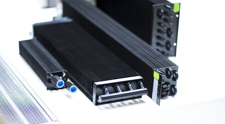 This image showcases advanced industrial machinery featuring large ventilation fans. The modern design emphasizes engineering excellence and technological innovation in a factory setting.