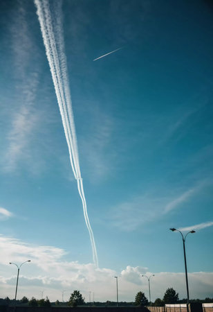 A majestic airplane soaring high in a clear sky, leaving a trail of condensation, symbolizing travel and freedom.
