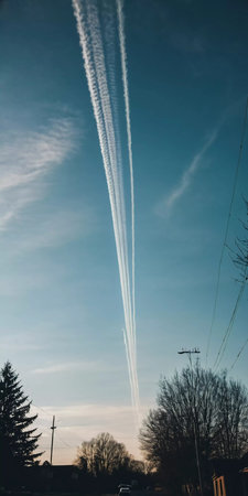 Chemtrail conspiracy theory. Long-lasting condensation trails left in sky by high-flying aircraft are actually chemtrails consisting of chemical or biological agents, sprayed for nefarious purposes