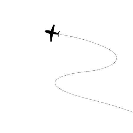 Route of an airplane with white contrail in the blue sky. Plane flies and draws route in the clear blue sky. transport