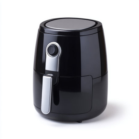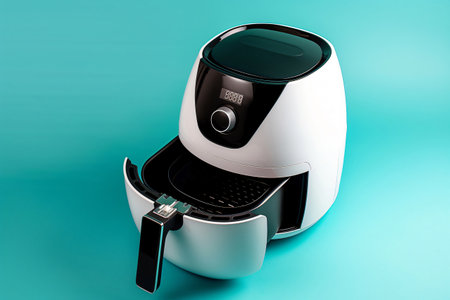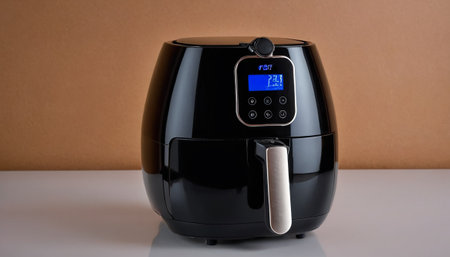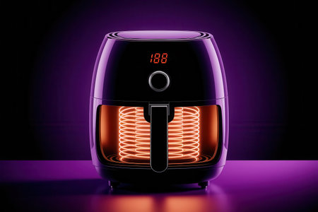 A sleek and modern air fryer featuring an LED display and innovative heating coils. Perfect for creating healthy meals quickly and easily in any kitchen.
