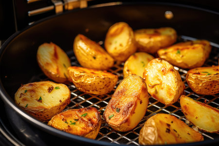 baked potatoes in a cast - iron pan, Air fryer machine cooking potato fried in kitchen, AI Generated