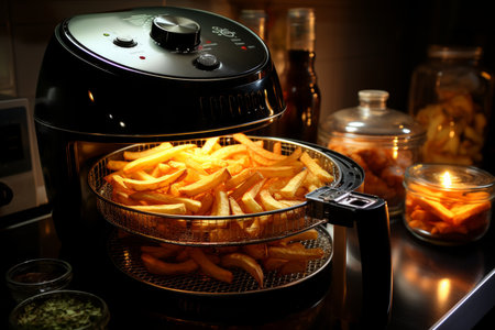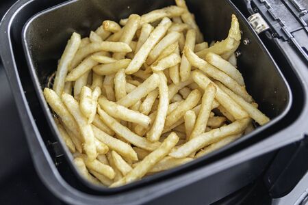 Airfryer-made potato fries, healthy food concept, reduced fat content for nutritious snacking