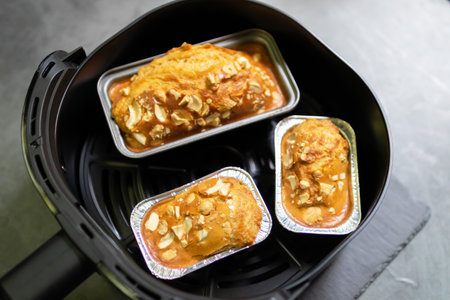 homemade oragnic cupcake are baked by using a black air fryer or oil free fryer appliance for being breakfast in the morning