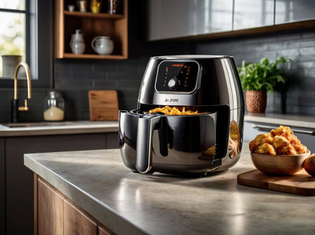Air fryer in modern kitchen. Fast and convenient cooking at home