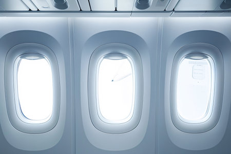 Photo of the windows of an airplane from inside with isolated white background, in the style of photo realistic --ar 3:2 Job ID: c4906ca2-2fa5-4ad8-aaa4-ed2fa50b34cc