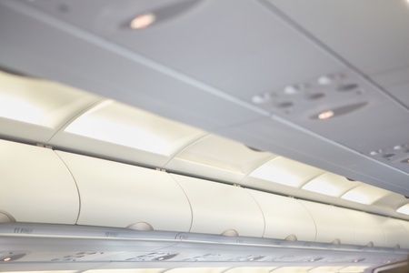 Close up of overhead console in the modern passenger aircraft.air conditioner button and lighting switch.selective focus