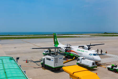 Kinmen, JUN 2 2014 - Sunny view of an Uni Air airplane parked in the airport