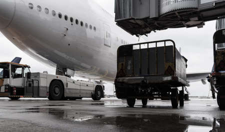 Loading baggage on the plane before departure at Vnukovo airport, Moscow