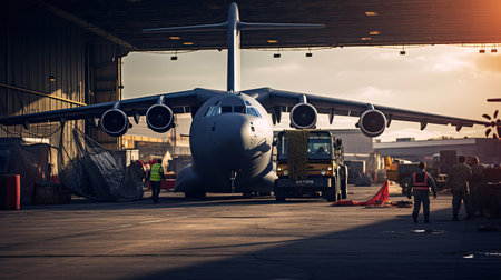 Airlift Operations: Cargo Plans Being Loaded with Supplies on a Military Base
