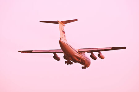 Landing of the plane IL-76MD at sunset on September 11, 2014 in Chelkovo, Russia.