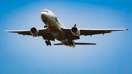 Tan Son Nhat Airport, Ho Chi Minh City, Vietnam - February 28, 2021: Commercial aircraft is about to land at Tan Son Nhat airport in the nice afternoon
