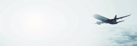 A minimalistic and sleek silhouette of an airplane in flight, soaring through the clouds. Perfect for airlines and flight booking agencies.