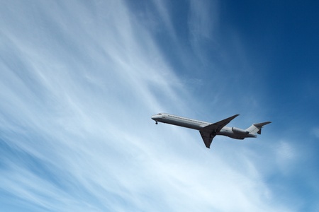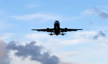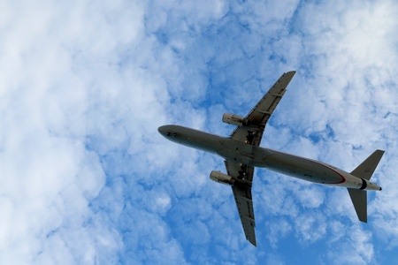 Big airliner in the blue sky with clouds