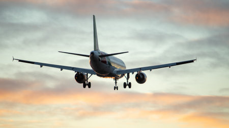 passenger jet flies in for a landing