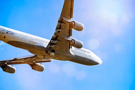 Lufthansa aircraft (Boeing 747-8 - D-ABYQ) taking off from Frankfurt Airport. Frankfurt, Hesse / Germany - September 25 2018
