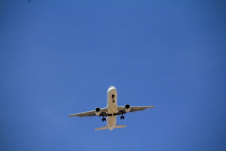 airplane jet while landing from bottom view