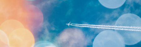 A majestic airplane soaring high in a clear sky, leaving a trail of condensation, symbolizing travel and freedom.