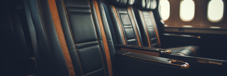 Inside a luxury jet plane with a comfortable seat. Premium travel concept