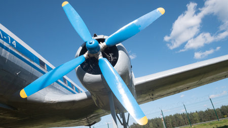 Vintage Soviet Aircraft Propeller Against a Blue Sky Capturing the Essence of Mid-20th Century Aviation History in Russia