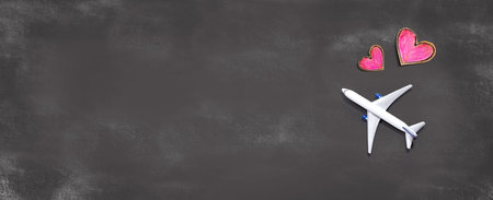 Flights booking and reservation theme with airplane and hearts