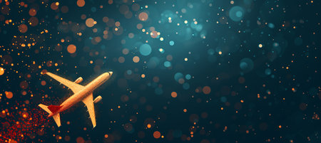 Digital airplane flying in a wide blue sky, creating a concept related to travel and tourism
